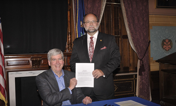 Gov. Rick Snyder signed a bill into law on Wednesday that will allow the state in partnership with Canadian oil giant Enbridge to build a controversial new oil pipeline planned for the Mackinac Straits.